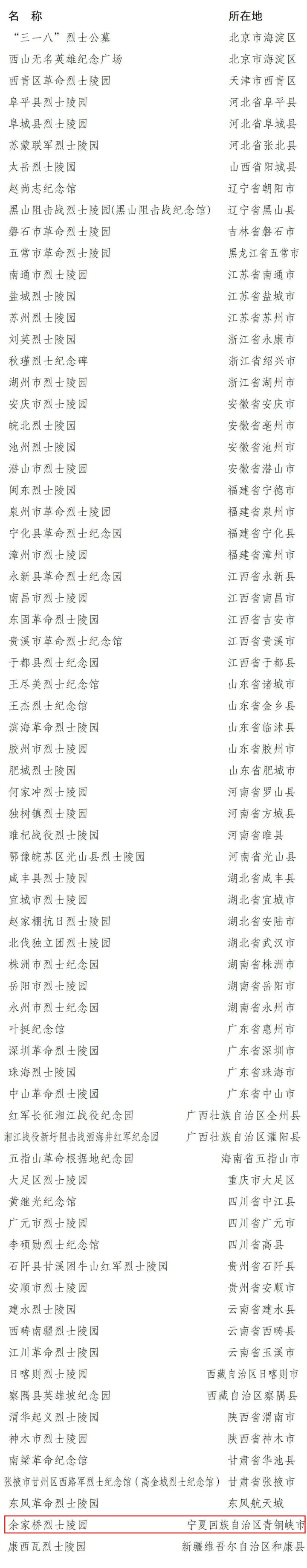 日前,退役军人事务部正式公布第七批国家级烈士纪念设施名单,新增71处设施,宁夏余家桥烈士陵园入选。